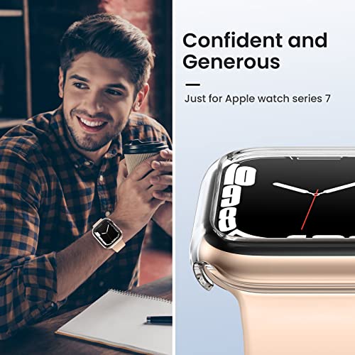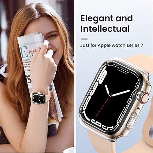 Goton - حافظة حماية بحافة صلبة من البولي إيثيلين متوافقة مع ساعة آبل آي-ووتش سيريز 7 مقاس 45 ملم من جوتون، عبوة من قطعتين (شفاف + شفاف، مقاس 45 ملم)
