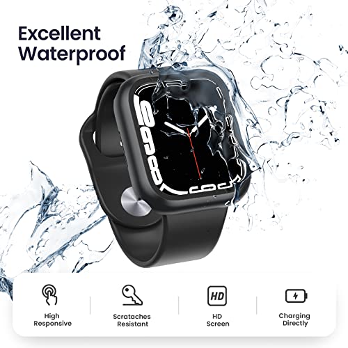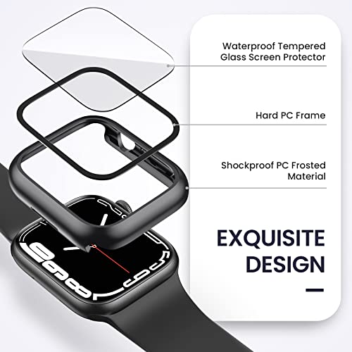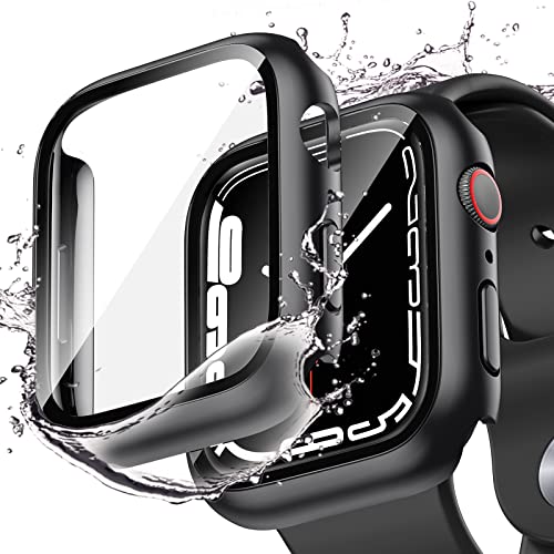 Goton - هيكل حماية مع شاشة حماية لساعة آبل 45 ملم من جوتون، هيكل حماية كامل مقاوم للماء من البولي كربونات والزجاج المقوى، ممتص للصدمات لساعة اي ووتش سلسلة 7، 45 مل، عبوة من 2 قطعة