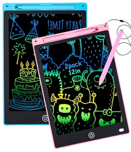 PERMUST - تابلت كتابة LCD ملون مقاس 12 انش للاطفال، لوح رسم للكتابة قابل للمسح واعادة الاستخدام، هدايا العاب تعليمية للاطفال بعمر 3 4 5 6 سنوات للاولاد والبنات الصغار