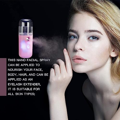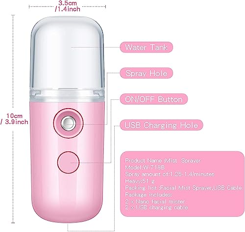 ALBTYUS - بخاخ وجه بتقنية النانو، مرطب وجه صغير محمول وقابل لإعادة الشحن عبر منفذ USB للعناية بالبشرة وترطيب الوجه والمكياج اليومي، 2 قطعة (وردي+ أبيض، مقاس 30 مل)