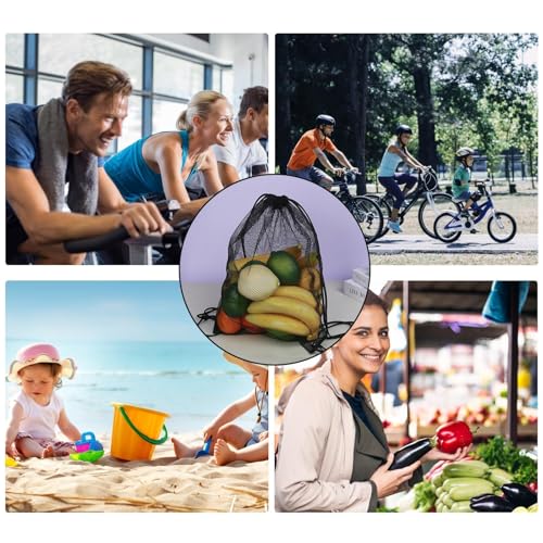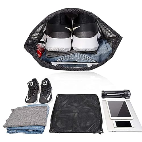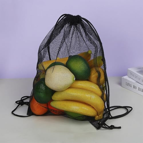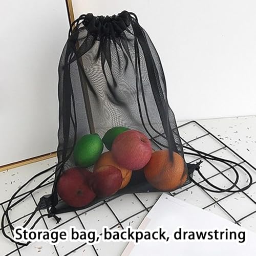 IKEEP - شنطة توت شبكية شبكية برباط 40 × 45 سم للشاطئ، شنطة ظهر شبكية برباط لصالة الالعاب الرياضية/الغسيل/الشاطئ/الصالة الرياضية/الملابس/السفر/السباحة، اسود، مقاس M