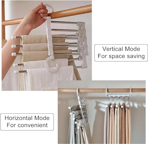 - 【طريقتان للاستخدام】شماعات البنطلونات السحرية يمكن تعليقها أفقيًا أو عموديًا، يمكنك اختيار الطريقة التي تناسب دولاب ملابسك.. تُعد شماعة البنطلونات الموفرة للمساحة مثاليةً لتعليق الجينز والبنطلونات والكرافتات والسكارفات وبناطيل اللجينجز وغيرها.