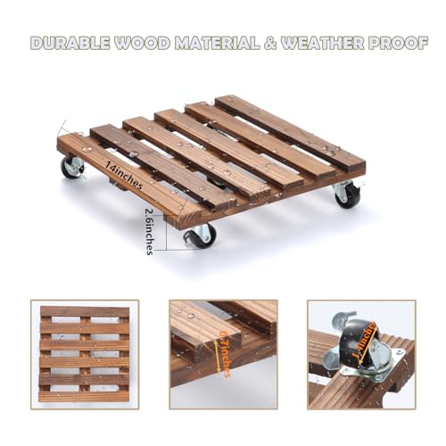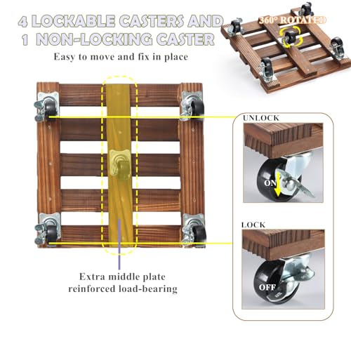 - 【مادة متينة】حامل نباتات بعجلات مصنوع من خشب الصنوبر، وهو مقاوم للتآكل وقوي وليس من السهل أن يتلف أو يتمزق. يمكنها تحمل اختبار الزمن في الهواء الطلق. يمكنك استخدامها بثقة لحمل أواني النباتات الثقيلة.