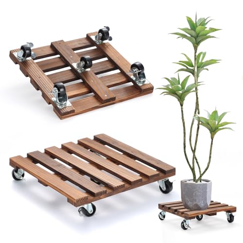 PRAQECZ - حامل نباتات بعجلات دوار مربع الشكل، مصنوع من الخشب، شديد التحمل بعجلات دوارة 360 درجة معدنية قابلة للقفل لأوعية النباتات الكبيرة الخارجية والداخلية وأصيص الزهور والفناء، 119.7 كجم، 35.5 سم، 2 قطعة