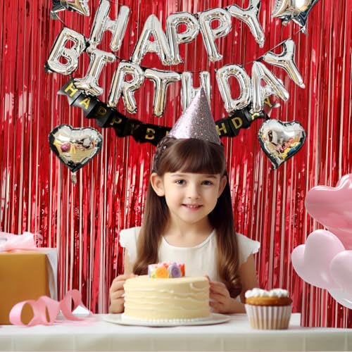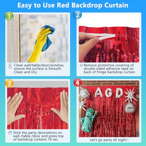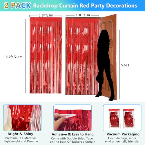 - خلفية بشراشيب لتزيين الحفلات باللون الأحمر: عبوتان/مجموعة، كمية كافية لتزيين حفلة عيد ميلادك. يبلغ مقاس كل ستارة خلفية حمراء 3.3 × 8.8 قدم، طول كافٍ لتزيين حفلتك. ملحقات مثالية لتزيين الباب / الحائط / النافذة / السلالم / حامل القوس
