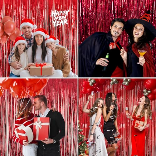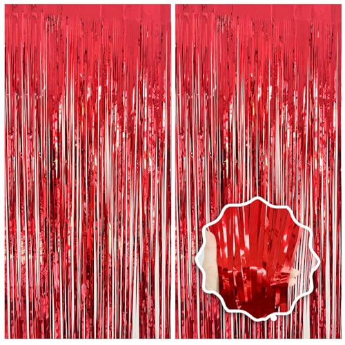 JEBUTU - قطعتان من ستائر خلفية الحفلات ذات الشراشيب الحمراء من الرقائق المعدنية، دعائم كشك الصور لعيد الميلاد والكريسماس والزفاف والكرنفال والكازينو واعياد الميلاد ورأس السنة الجديدة والاحتفال بالعزوبية