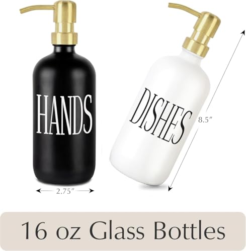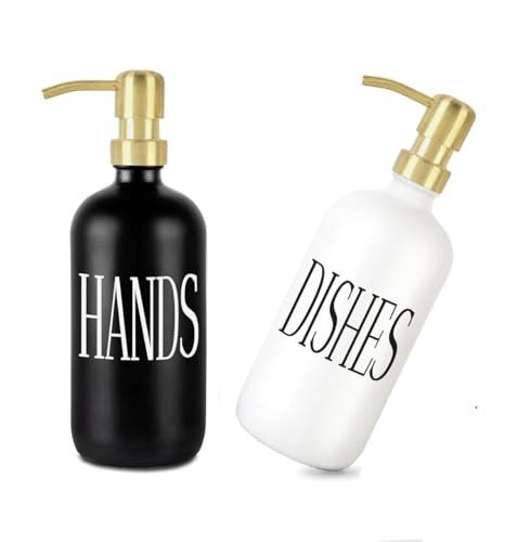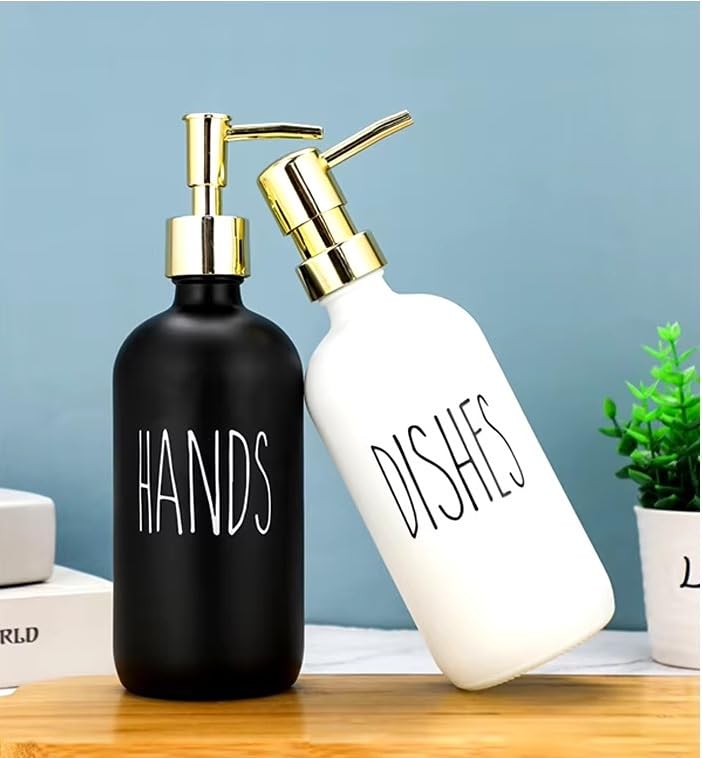 Generic - موزع صابون ولوشن زجاجي قابل لاعادة الملء، حاويات موزع دش بمضخة تجميل، عبوة مدمجة للحمام مكونة من قطعتين بلون ابيض واسود