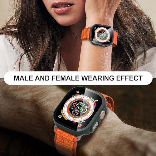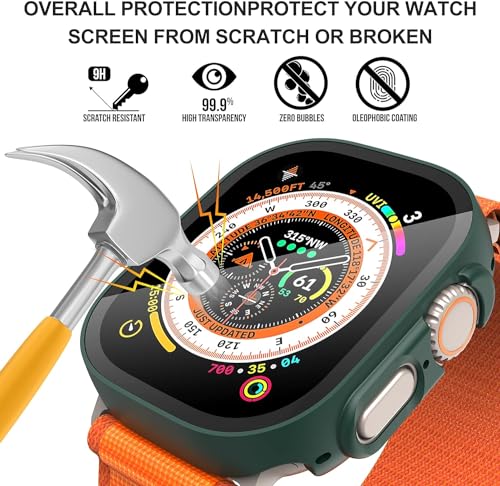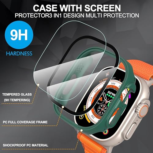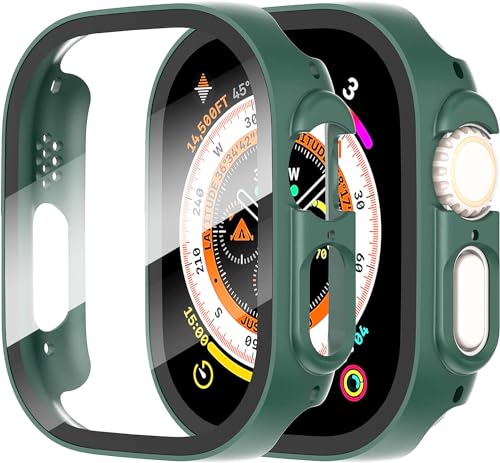 ELMO3EZZ - واقي شاشة لساعة ابل الترا من الزجاج المقوى الموعز صلب غير لامع البولي كربونات اي ووتش 49 ملم - اخضر - عبوة قطعتين بلاستيك