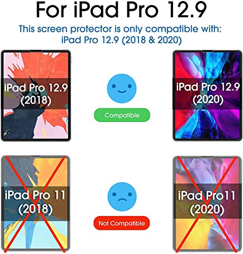 - ✅【تصميم مثالي】: يناسب فقط اي باد برو 12.9 بوصة الجيل الرابع والثالث، إصدار 2020 و2018 (الموديلات: A1876/A1895/A1983/A2014/A2229/A2233). يرجى التحقق من الجزء السفلي من جهاز اي باد الخاص بك لمطابقة رقم الموديل. شاشة الحماية غير متوافقة مع جهاز اي باد برو 12.9 بوصة بزر الصفحة الرئيسية (الجيل السابق).