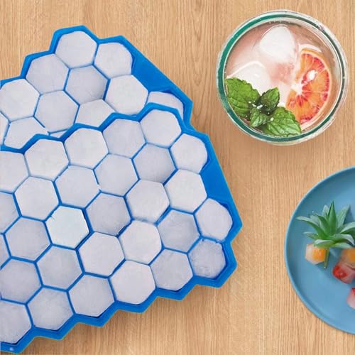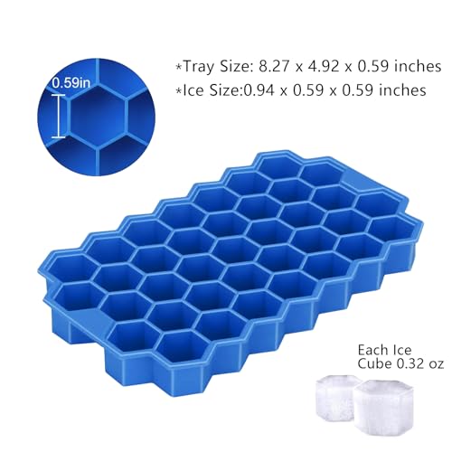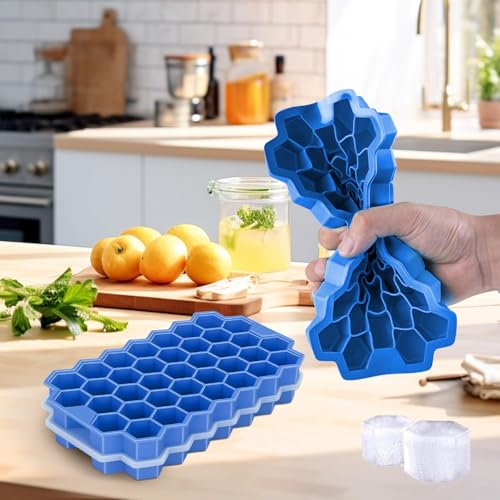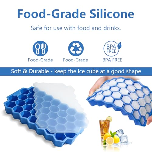 starfa lab - صواني مكعبات ثلج من السيليكون مع غطاء - 37 قالب مكعبات ثلج صغيرة للفريزر قابلة لاعادة الاستخدام وخالية من BPA وسهلة الفك للكوكتيل والويسكي والقهوة المثلجة، امنة للاستخدام في غسالة الصحون، قطعتين