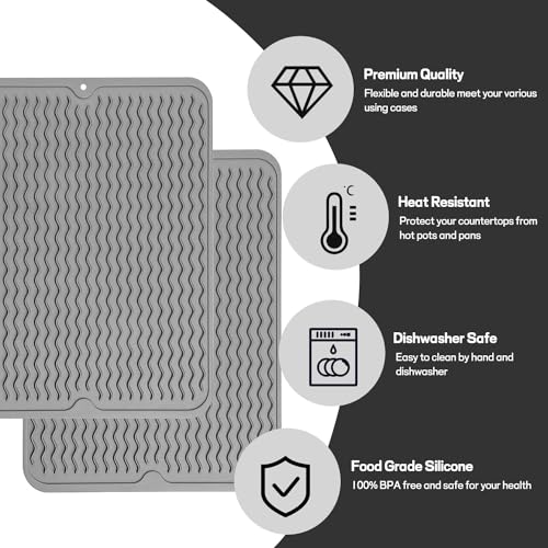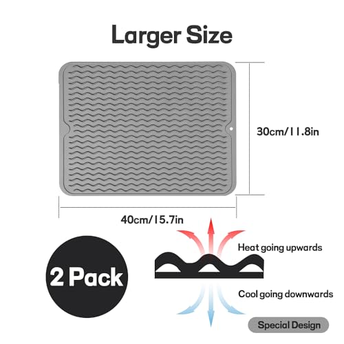 Movstriker - قطعتان من حوامل السيليكون للمقالي الساخنة والاواني الساخنة، 40 × 30 سم، حوامل سيليكون كبيرة متعددة الاغراض لأسطح عمل المطبخ، حصيرة مرنة مقاومة للحرارة لحماية سطح العمل والاطباق الساخنة والاواني غير