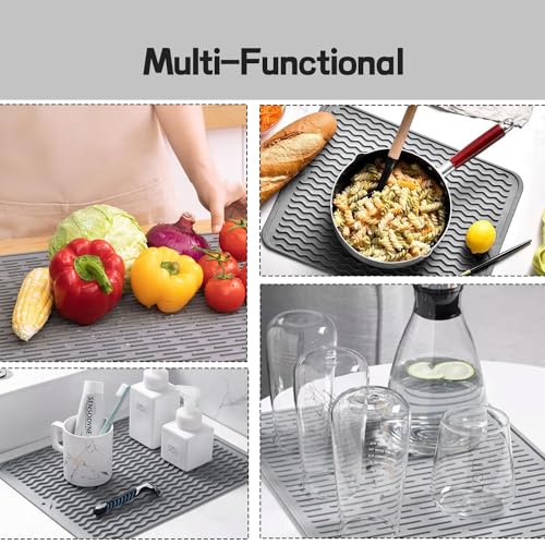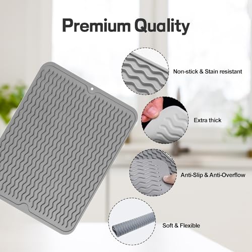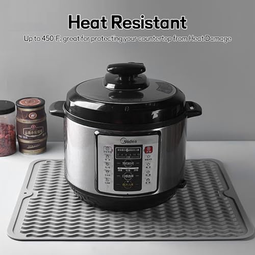 - 【تصميم مضاد للانزلاق ومضاد للتدفق الزائد】مادة السيليكون غير القابلة للانزلاق والتصميم المحدب المقعر يجعل الوعاء الموجود على الوسادة الساخنة لا ينزلق بسهولة. من السهل الإمساك بطبق ساخن باستخدام بساط السيليكون. يمكن للحافة المرتفعة منع تدفق الماء أو الحساء والحفاظ على نظافة الطاولة.