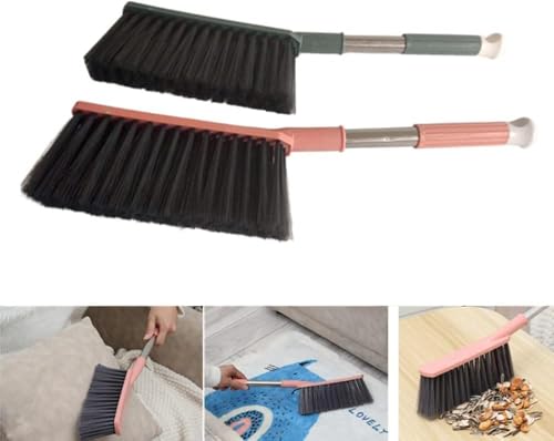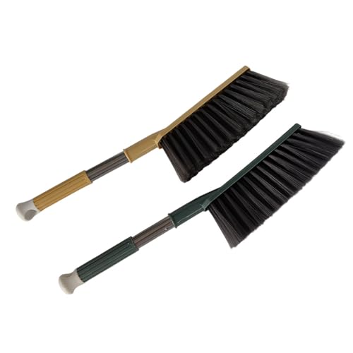 Jilukibo - قطعتان من فرشاة تنظيف ملاءات السرير بشعيرات ناعمة بيد طويلة، منفضة غبار لإزالة الأوساخ والشعر واللحاف المكتبي والكنبة والاثاث (اصفر واخضر)