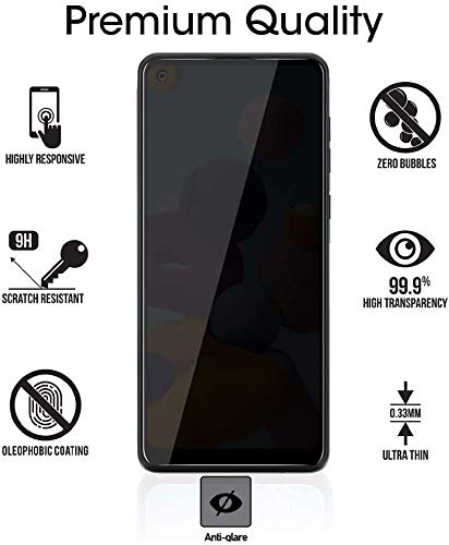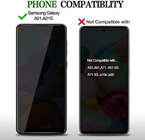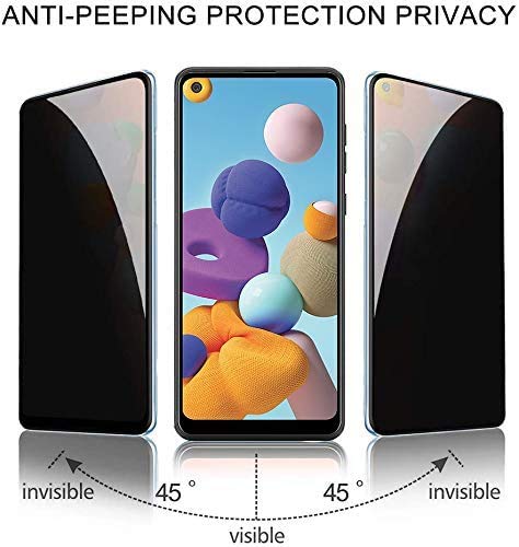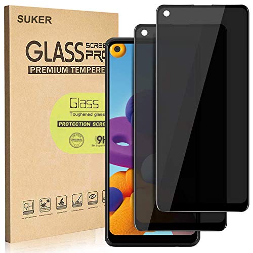AmzSuker - شاشة حماية للخصوصية لموبايل سامسونج جالاكسي A21/A21S (6.5 بوصة)، شاشة حماية بتغطية كاملة من الزجاج المقوى بدرجة صلابة 9H مضادة للخدش وخالية من الفقاعات ومناسبة للجراب من سوكر، [عبوة من قطعتين]