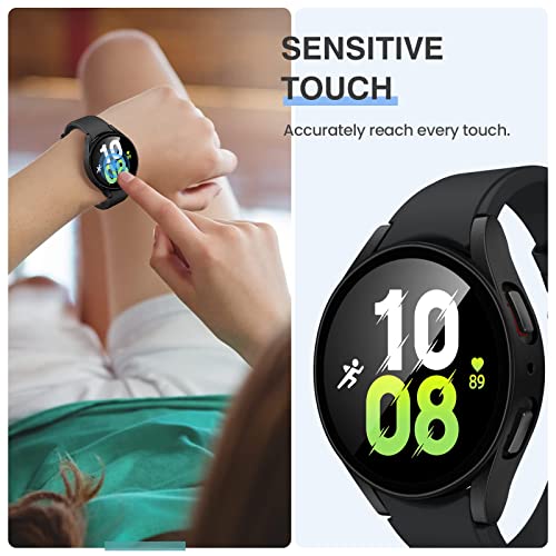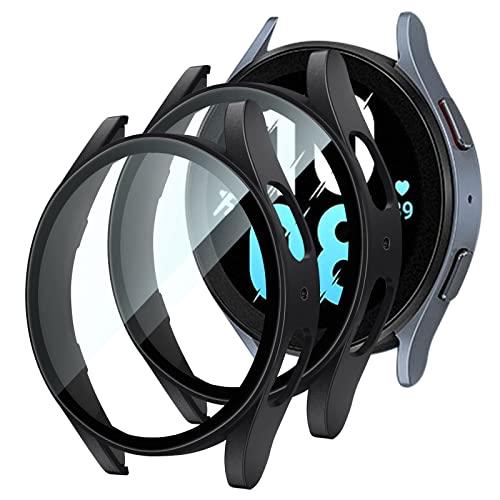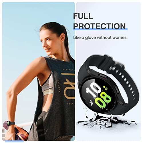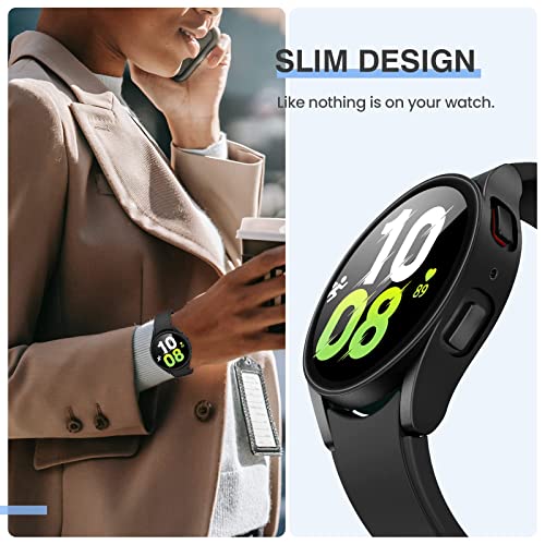 T Tersely - جراب صلب من تي تيرسلي لساعة سامسونج جالاكسي ووتش 5/ ووتش 4 (44/45 ملم)، مع شاشة حماية من الزجاج المقوى، جراب كامل رفيع للغاية (44 ملم، أسود + أسود)