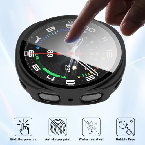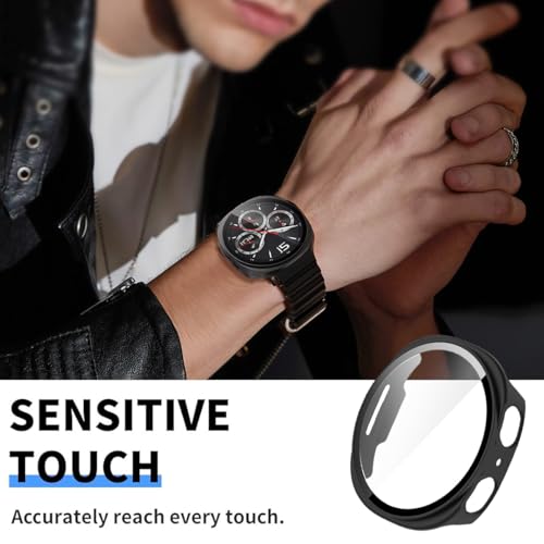 T Tersely - جراب صلب تي تيرسيلي لساعة سامسونج جالاكسي 8 (44 ملم)، مع واقي شاشة من الزجاج المقسى، جراب كامل رفيع للغاية (قطعتان) (اسود + اسود)