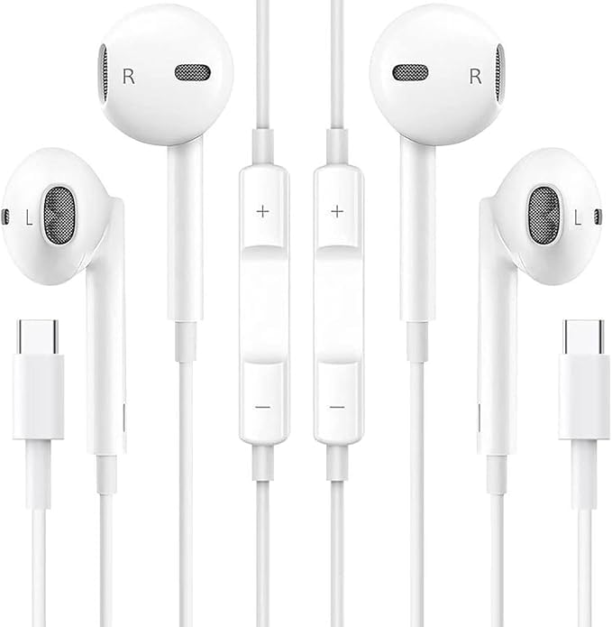- سماعات اذن سلكية بمنفذ USB C، متوافقة مع ايفون 16/15 برو، ايباد برو اير ميني، سامسونج جالكسي S24/S23/S22/S20/FE/الترا A53/A54/A55، هواوي P70/60، جوجل بيكسل، شاومي [مجموعة من قطعتان]