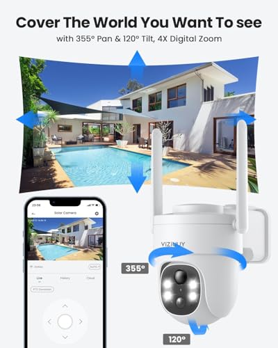 - [دقة 2K عالية الوضوح بالكامل مع تغطية شاملة بزاوية 360 درجة] تم تجهيز كاميرات المراقبة اللاسلكية الخارجية التي تعمل بالطاقة الشمسية بدقة 3 ميجابكسل (2048 × 1536)، وهي أكثر بمقدار 1.5 مرة من كاميرا المراقبة بدقة 1080 بكسل. كما يمكن تدوير كاميرا بي تي زد أفقيًا حتى 355 درجة وعموديًا حتى 90 درجة. يمكن مراقبة جميع المناطق عن بعد من خلال تطبيق "كلاوددج" لتغطية 360 درجة لمنطقة معينة، ما يجعلها مثالية لأمن المنزل والعمل.