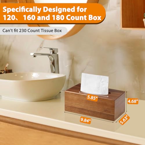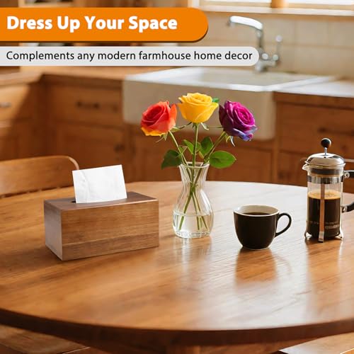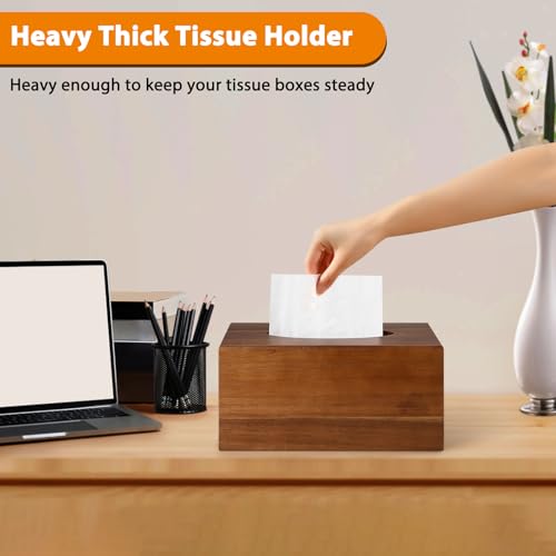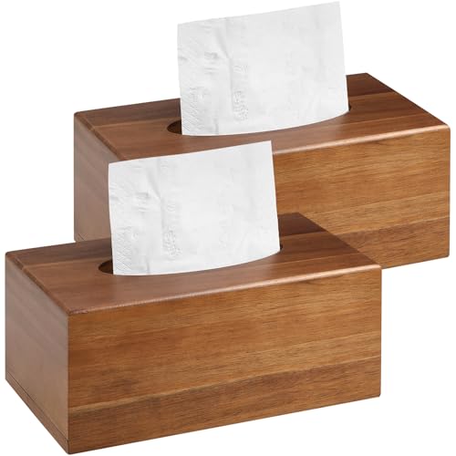 VZZNN - غطاء صندوق مناديل خشبي مستطيل الشكل - حامل علبة مناديل خشبي مستطيل من خشب الاكاسيا لسطح الطاولة والطاولات الليلية والحمام والمكتب - غطاء صندوق مناديل الوجه المزخرف لديكور منزل بنمط ريفي وحديث، 2 قطعة