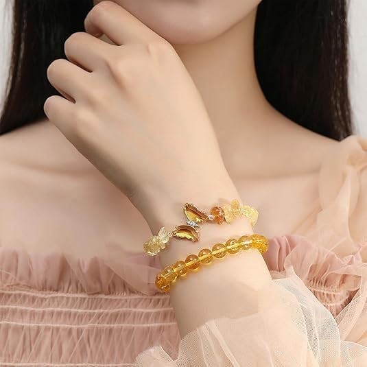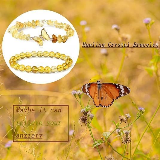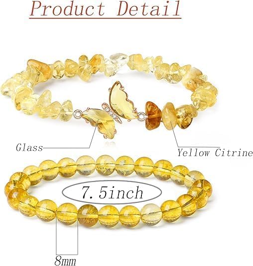 fashion mania - مجموعة اساور قابلة للتمدد بتصميم فراشة من السترين الاصفر بخرز كريستال طبيعي من الاحجار الكريمة العلاجية، مجموعة مجوهرات عصرية من قطعتين