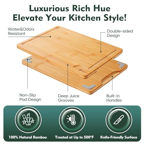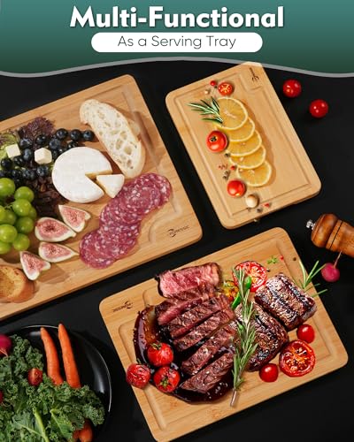 Foressic - ألواح تقطيع من الخيزران، مجموعة من قطعتين بأقدام غير قابلة للانزلاق فوق الحوض، مجموعة بسطح أملس مناسب للسكين وسهلة التخزين للمطابخ وإعداد الوجبات وتقديمها، أدوات مطبخ - 01
