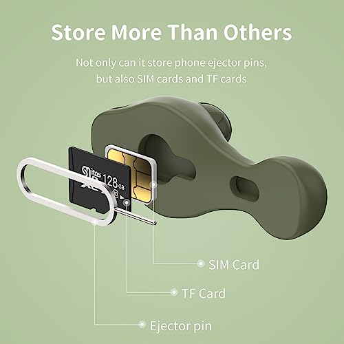 SIKAI CASE - أدوات إزالة شريحة الاتصال، 30 قطعة من دبابيس إخراج البطاقات، مناسبة لتخزين شريحة الاتصال/بطاقة SD والدبابيس، مع حلقات سلسلة مفاتيح متوافقة مع جميع موديلات الموبايلات (أخضر غامق، عبوتين)
