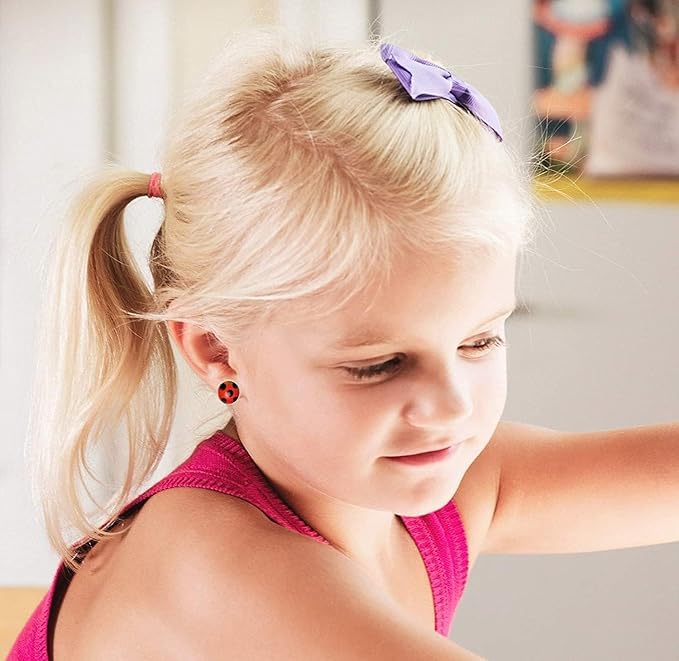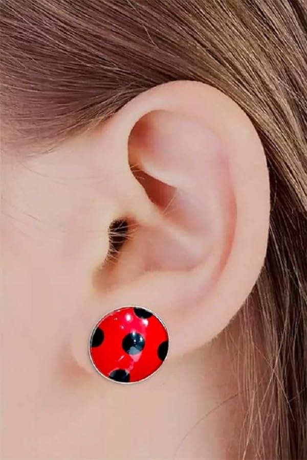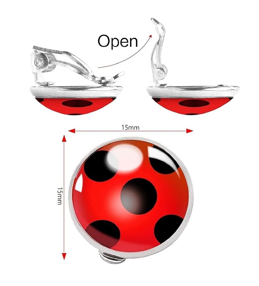 fashion mania - زوجان من اقراط بمشبك على شكل دعسوقة، مجوهرات بتصميم الدعسوقة بدون ثقب مع سوار اذن فضي بقعة سوداء وحمراء للبنات والنساء