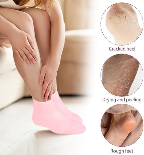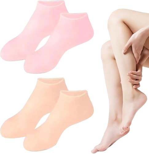 Muaminhuan - زوجان من جوارب السيليكون المرطبة للنساء/ جوارب جل مضادة للانزلاق/ جوارب مطاطية جل ناعمة/ جوارب ترطيب سيليكون عالية المرونة للرجال والنساء (بينك وبيج)
