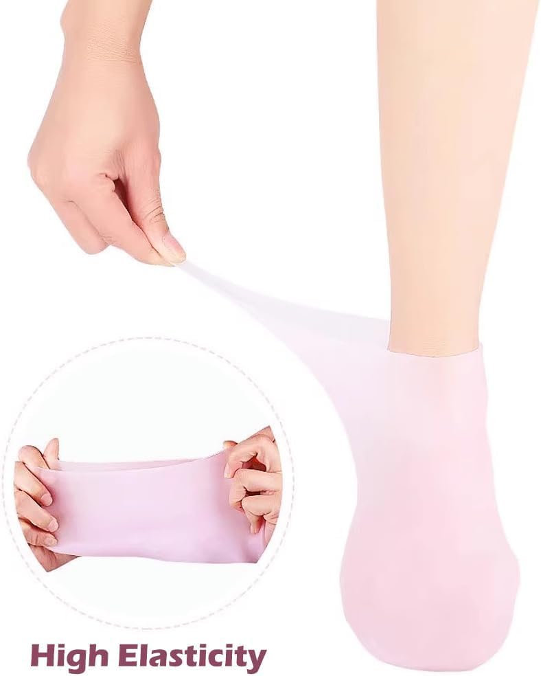 - مناسبة لجميع المقاسات: جوارب السيليكون المرطبة الخاصة بنا ذات التمدد الجيد، قل وداعًا لمشاكل المقاس! جوارب القدم المصنوعة من السيليكون قابلة للتمدد لتناسب مجموعة متنوعة من المقاسات من الأقدام الصغيرة إلى الكبيرة. الجزيئات السفلية غير قابلة للانزلاق.