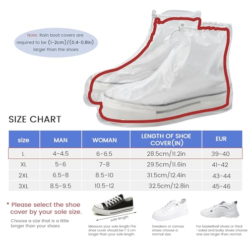 - 【معلومات المقاس】يتوفر غطاء الحذاء المقاوم للماء بأربعة مقاسات: L (38-40)، XL (41-42)، XXL (43-44)، XXXL (44-46)، فقط اختر المقاس الذي يناسبك.