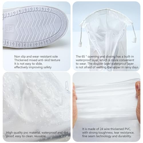 - 【المادة】غطاء حذاء المطر مصنوع من مادة بلاستيك PVC عالية الجودة، مقاوم للماء ومتين. النعل الناعم والجزء العلوي القابل للتعديل يجعل غطاء حذاء المطر مريحًا جدًا للارتداء والمشي.