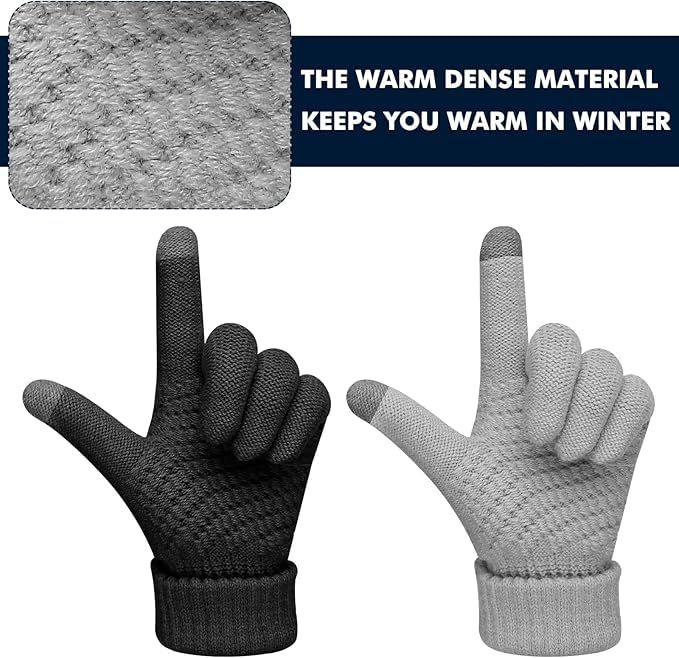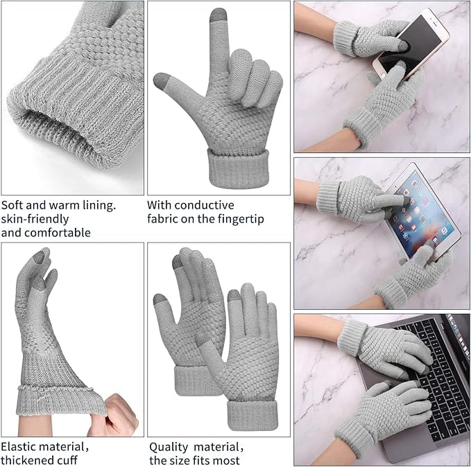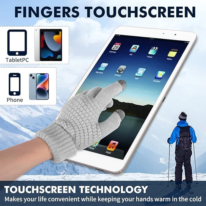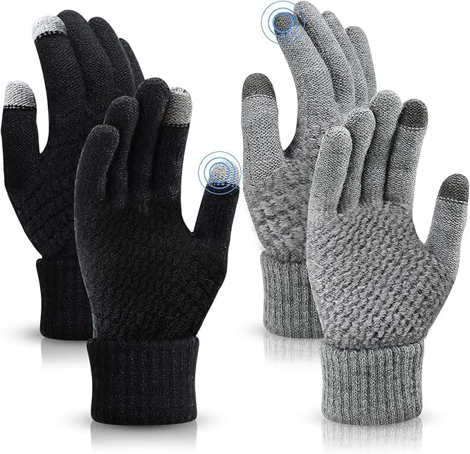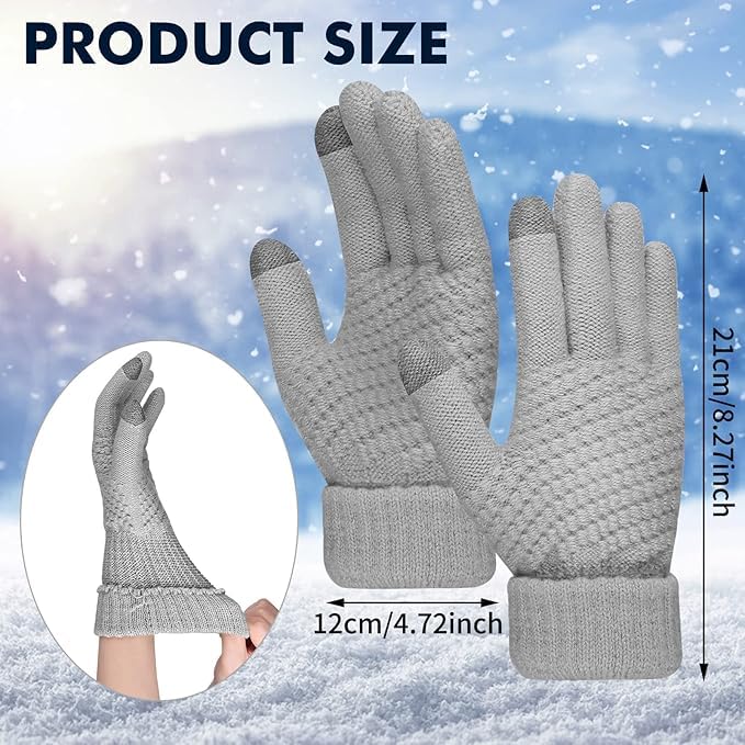 AKASENKO - زوجان من القفازات الشتوية، قفازات لشاشة اللمس للنساء، قفازات حرارية مع شاشة تعمل باللمس، قفازات شتوية للنساء للطقس البارد في الهواء الطلق