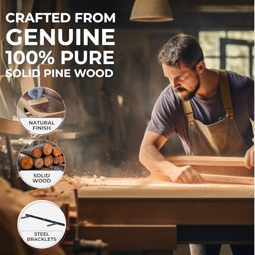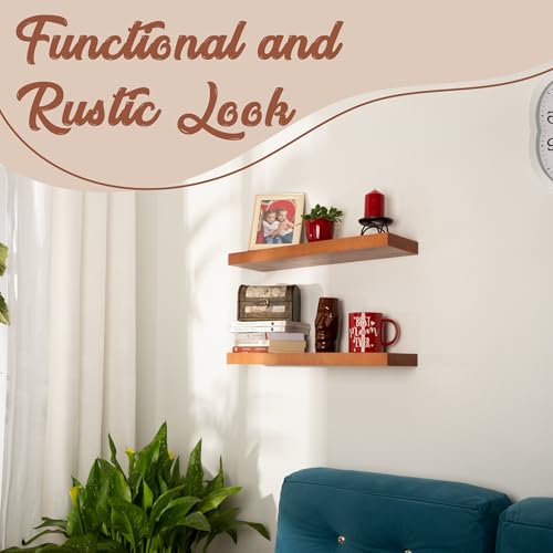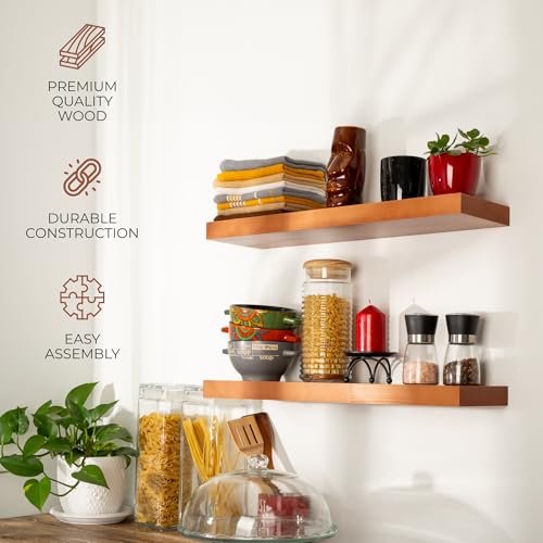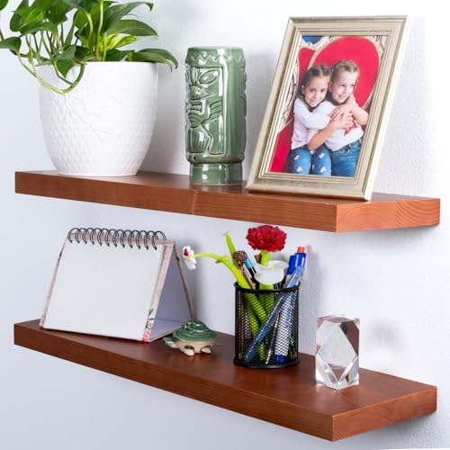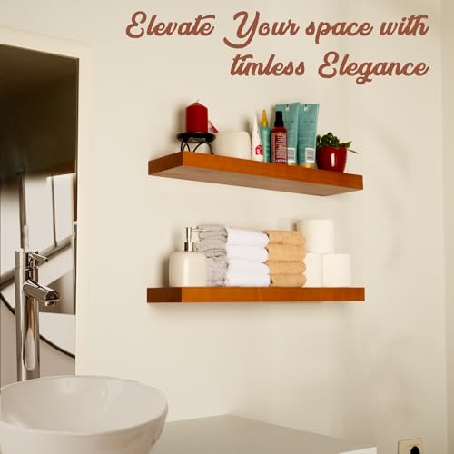 houthvige - رف للتعليق من خشب الصنوبر الطبيعي للتثبيت على الحائط بدون ثقب، طقم رفوف خشب مثبتة على الحائط، رفوف للحائط لغرفة المعيشة والحمام والمطبخ وغرفة النوم، لون خشب البلوط العسلي، قطعتان، مقاس 61 سم