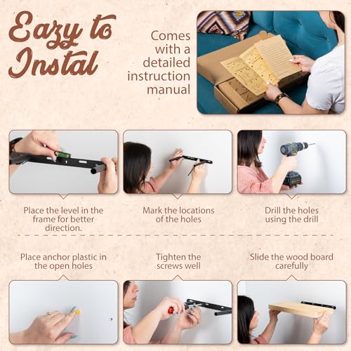 - تصميم سريع وسهل التركيب: ثبت الحامل المصنوع من الحديد المطاوع على الحائط باستخدام المسامير مع التأكد من توازنه، ثم مرّر الرف فوق القضبان للحصول على دعم قوي وغير مرئي. يمكنك وضع الكتب والزينة على الرف وستظل مستوية دون أن ينحني أو يتهدل الرف بسبب الوزن. أنشئ رفوفًا للمطبخ أو المكتب أو الحمام مع تثبيت آمن على الحائط وراحة الاستخدام.