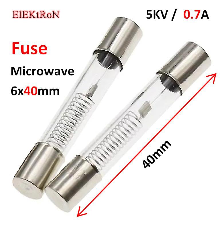 Generic - عدد قطعتين من فيوز ميكرويف 0.7 امبير 5 كيلو فولت - Microwave Oven 0.7A 5KV 6.4*40mm Glass Tube Fuse 6x40mm High-Pressure With pin 6.4 x 40 mm