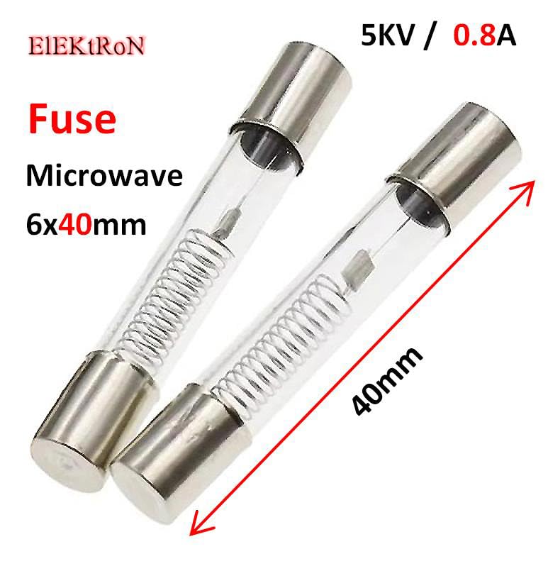 - عدد قطعتين من فيوز ميكرويف 0.8 امبير 5 كيلو فولت - Microwave Oven 0.8A 5KV 6.4*40mm Glass Tube Fuse 6x40mm High-Pressure With pin 6.4 x 40 mm