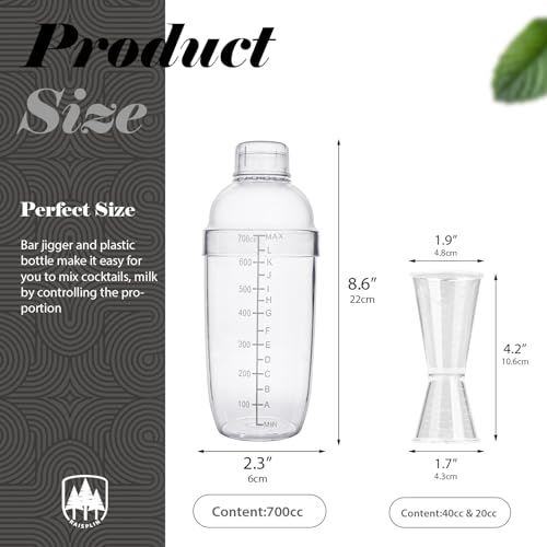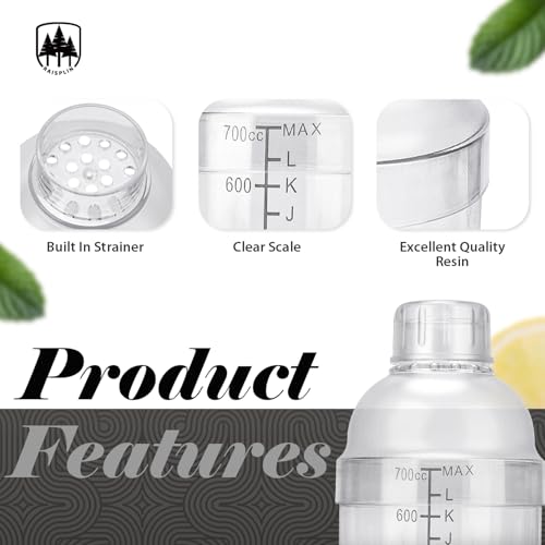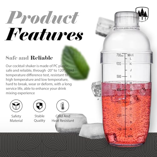 - مجموعة شيكر كوكتيل بلاستيكية سعة 24 اونصة - تأتي مع 2 شيكر كوكتيل بمقياس و2 جيجر قياس، لا حاجة للشراء بشكل منفصل، يمكنك صنع مشروبك المفضل بدقة في كل مرة. حتى المبتدئين يمكنهم صنع مشروب مثالي بسهولة باتباع الوصفات.
