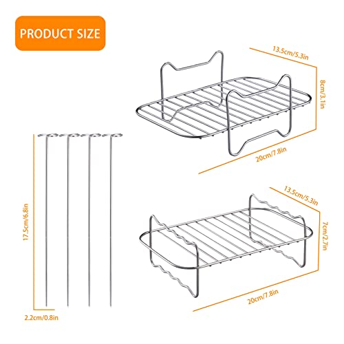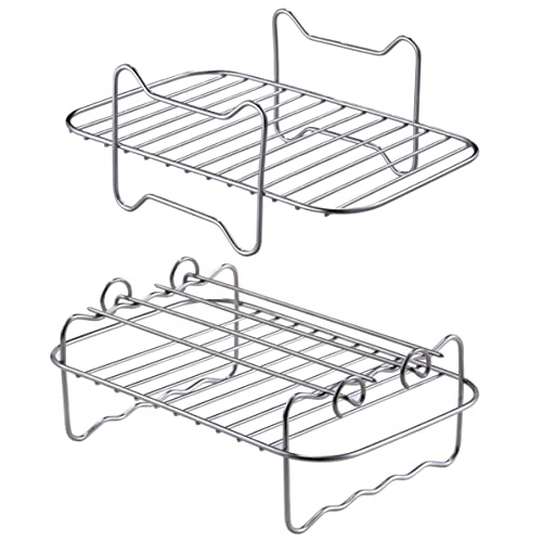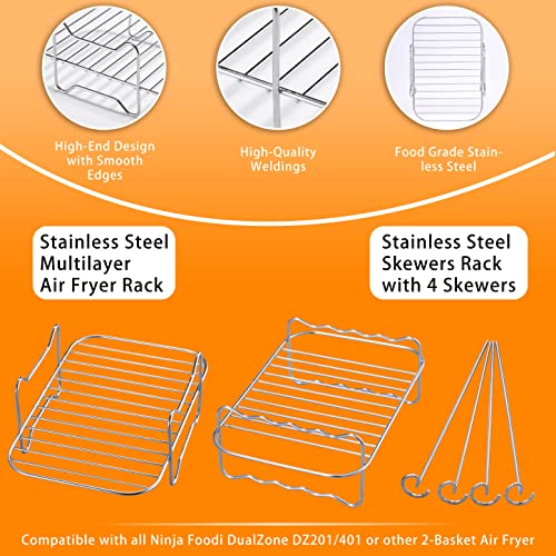 AsWeWixi - رف شواء للمقلاة الهوائية من الفولاذ المقاوم للصدأ مع 4 أسياخ شواء، متوافق مع مقلاة نينجا فود الهوائية ثنائية المنطقة AF300UK AF400UK، اكسسوارات المقلاة الهوائية ذات السلة المزدوجة، 2 قطعة