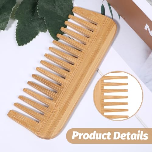 Gtziqa - مشط باسنان عريضة من الخيزران، امشاط خشبية عريضة الاسنان، مشط كبير لفك تشابك الشعر بدون مقبض يمنع التشابك ومضاد للكهرباء الساكنة للشعر المجعد والمفرود والمموج والطويل والكثيف للرجال والنساء