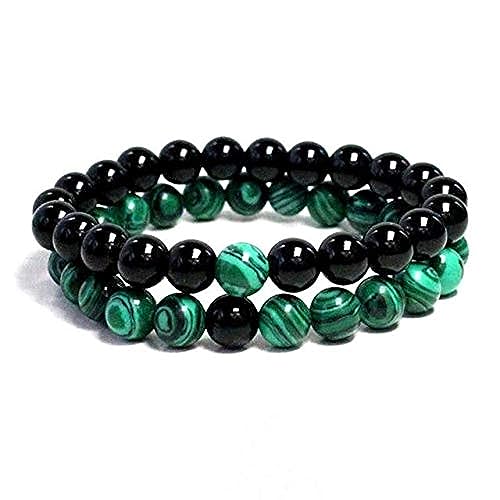 generic - سوار خرز من حجر الميلاكيت الطبيعي باللونين الاسود والاخضر من قطعتين