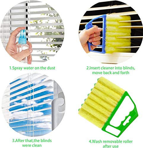 Hokoad - منظف ستائر - أداة تنظيف ستائر النوافذ القابلة للغسل، منفضة غبار محمولة باليد لستائر الخشب، فرشاة صغيرة لتنظيف الغبار والستائر والظلال الفينيسية للنوافذ ومكيفات الهواء والأوساخ، قطعتان