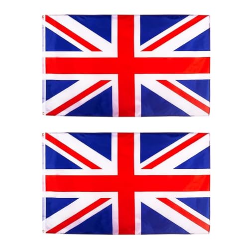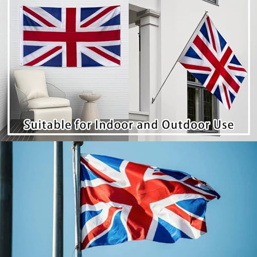 ARROMI - علم بريطاني من قطعتين، علم يونيون جاك، علم المملكة المتحدة، علم المملكة المتحدة 3 × 5 قدم - (90 × 150 سم)، علم المملكة المتحدة للاستخدام الداخلي والخارجي مصنوع من البوليستر عالي الجودة بالوان زاهية
