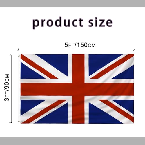 - حجم المنتج: العلم البريطاني 3 × 5 قدم (90 × 150 سم) هذا العلم خفيف الوزن للغاية.