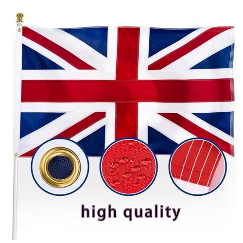 - مواد عالية الجودة: العلم البريطاني الخاص بنا مصنوع من مواد عالية الجودة، بألوان زاهية ورقيقة، مقاوم للماء، ليس من السهل أن يبهت، متين، ويمكن أن يبقى مشرقًا في جميع أنواع الطقس، مما يجعله مثاليًا للاستخدام الداخلي أو الخارجي أو الحديقة أو المكتب أو البار أو الاستعراض.