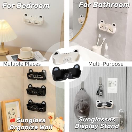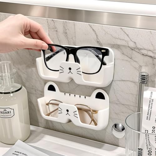 fashion mania - قطعتان من حامل النظارات يثبت على الحائط على شكل قطة، منظم تخزين النظارات الشمسية، منظم نظارات للمدخل وغرفة المعيشة وغرفة النوم والحمام
