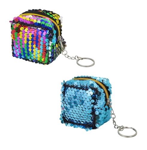 fashion mania - محفظة العملات المعدنية بسلسلة مفاتيح مزينة بالترتر، شنطة عملات معدنية للنساء والبنات، شنط تغيير لطيفة بحلقة مفاتيح وسوستة، قطعتين
