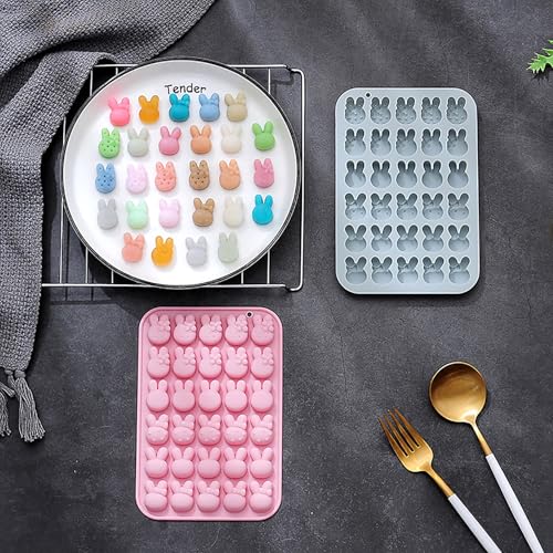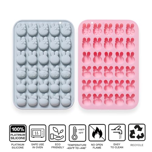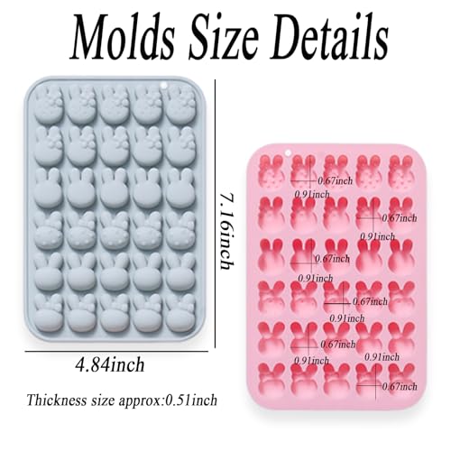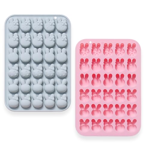 Lodeihoo - قوالب سيليكون على شكل أرنب عيد الفصح، قوالب سيليكون من 6 أشكال على شكل أرنب و30 تجويف، قالب حلوى وصينية إذابة الشمع للخبز والشوكولاتة والجيلي والراتنج والكب كيك على شكل أرنب من 2 قطعة