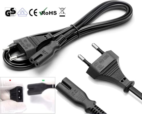 Generic - كابل طاقة أوروبي وسلك تمديد طاقة تيار متردد عالمي للراديو والشواحن ووحدات التحكم والأجهزة الإلكترونية المنزلية، سلك قابس متين لاتصال طاقة آمن وموثوق بطول 1.4 م من 2 قطعة
