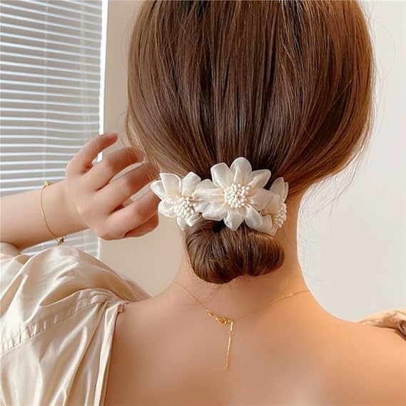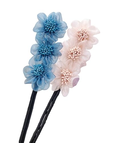 fashion mania - اداة تجعيد الشعر بتصميم زهور رائعة ولامعة، كعكة شعر انيقة، اداة تجعيد الشعر سهلة الشعر للنساء (ازرق + ابيض)