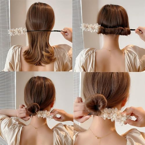 - المواد: ماكينة صنع كعكة الشعر هذه مصنوعة من الأورجانزا والبوليستر، بحرفية متقنة، مظهر رائع، منعش ومريح، جميل وعملي، ويمكن استخدامها عدة مرات. خفيفة الوزن، ليس من السهل كسرها، سهلة لعمل تصفيفة شعر للحفاظ على شعرك في مكانه